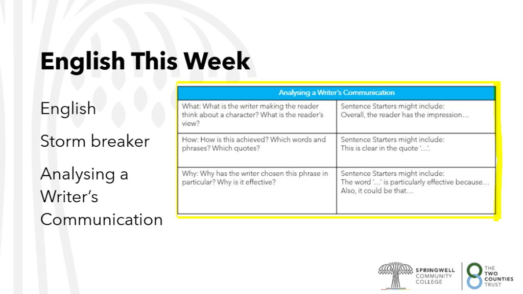 In the first instance, Year 7 students will only complete Home Learning for English, Maths and Science.